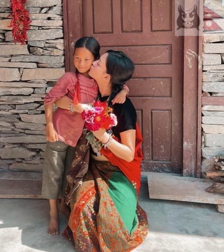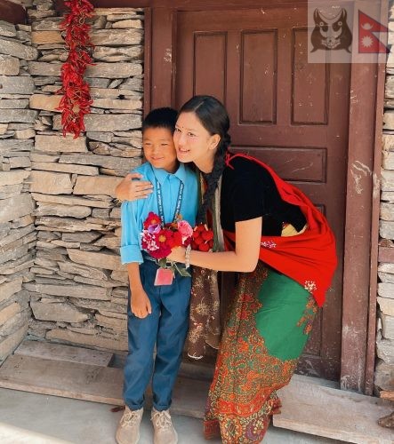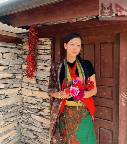 आफ्नै फेसबुक तथा इन्स्टाग्राममा सार्वजनिक गरिएको फोटोमा उनी मगर पहिरणमा सजिएकी छिन् । स्थानीय बालबालिकासँग रमाउँदै खिचिएको ४ वटा तस्वीर सञ्जालमा देख्न सकिन्छ ।