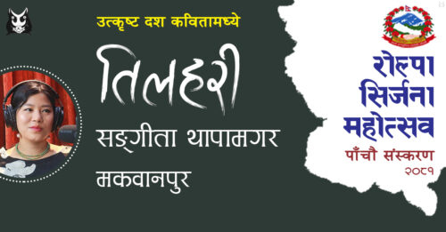 कुप्री भएकी हजुरआमालाईएकदिन यसै सोध्न मन लागेथ्योहजुरआमा !तपाईं कुप्रो नै जन्मनुभएको हो ? हजुरआमाले बिस्तारै मुसार्नु भएथ्यो- मालाजो-खुइलिँदै गएको पोते रमएलको बुट्टा समातेरपसिनाको सुगन्धसहितछातीमा लत्रिरहेको थियो समयको छापसहित चाउरी परेका गालारसाइरहने कुवाजस्ता धमिला आँखाकलेटी परेको ओठ खोलेरफिस्स हास्नु भएथ्योर,यो व्यवस्थाभन्दा लामो खुइया काड्दै भन्नुभएथ्यो…. निकै साल पहिलेघामले आँखा मिच्नभन्दा सबेरैपुरानै विचारका नयाँ मान्छेहरूथोत्रा चेतनाको साथ … Continue reading तिलहरी