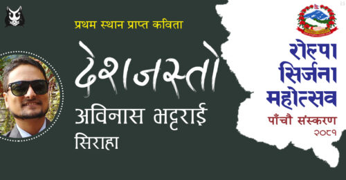 के हो त्यो-किनारै किनार हिँड्न बिर्सिएको नदीजस्तोके हो त्यो-लय बिग्रिएको गीतजस्तोहरियो इस्टकोट खोलेर बसेको पहाडजस्तोसेतो ह्याट् फुकालेर फ्याँकेको हिमालजस्तो मलाई जवाफ दिनोस्,कसले काट्यो पखेटा चराहरूको ?र भिराईदियो पखेँटा पासपोर्टकोके हो त्यो-विमानस्थलमा आँखाको बाँध भत्काएरबगेको खोलाजस्तोत्यही खोलाको भेलमाबगेको सपनाजस्तो अचेल जहीँतहीँ देख्छु म-माटोको खुन चुसिरहेका जुकाहरूझाडीमा रगत लत्पतिएका सलबारहरूसुदूर गाउँका आदिम भोकहरूसिटामोल पनि नदेखेका रोगहरूके हो … Continue reading देशजस्तो (प्रथम कविता)