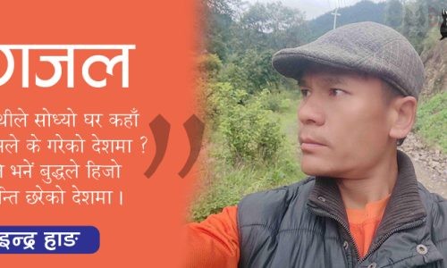गजल : इन्द्र हाङ इन्द्र हाङ २ आश्विन २०८०, मंगलवार साथीले सोध्यो घर कहाँ कसले के गरेको देशमा?मैले भनें बुद्धले हिजो शान्ति