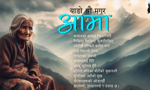 कविता : आमा याङो श्रो मगर १६ माघ २०८०, मंगलवार सन्तानको सामल पिस्दापिस्दैघिस्रिएर खिस्रिएर फुकालिछिन्चाँदीझैं टल्किने बत्तीस दन्तरातो चिल्लो गालागाथिएको जवानीसन्तानलाई दिँदैआफू