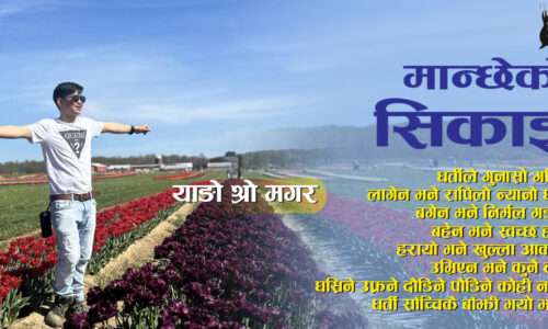 कविता : मान्छेको सिकाइ याङो श्रो मगर १३ असार २०८१, बुधबार चरीहरू आएर गुनासो पोखे मान्छेहरूलाई पखेटामा उडानको सङ्केत देखायौ उनीहरू उड्न थाले