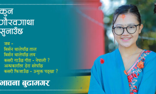 कुन गौरवगाथा सुनाउँछ भावना बुढामगर ३ चैत्र २०८०, शनिबार जब –बिर्सन थालेपछि तालबिर्सन थालेपछि लयकसरी गाउँछ गीत – नेपाली ?अन्धकारतिर डेरा