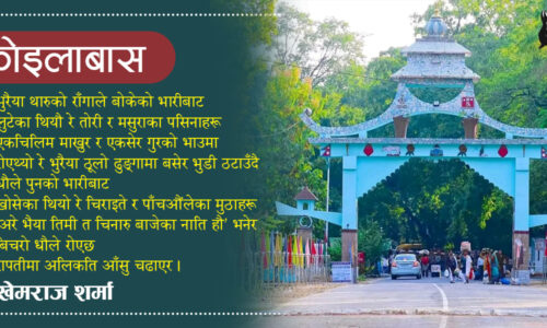 कविता : कोइलाबास खेमराज शर्मा ११ चैत्र २०८०, आईतवार अघि हाम्रा बाउहरूलेपाँचमोहर दाम सुर्केथैलीमा च्यापेरनाङ्गो शरीर भारेडोको बोकेरपिस्दै खुट्टाले गेग्य्राने बाटाहरूनाघ्दै