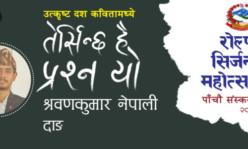 तेर्सिन्छ है प्रश्न यो श्रवणकुमार नेपाली १४ जेष्ठ २०८१, सोमबार हाम्रो मौलिकता छ जीर्ण अहिले अस्ताउँदै छन् रविभोको पेट बजार डुल्नु कसरी