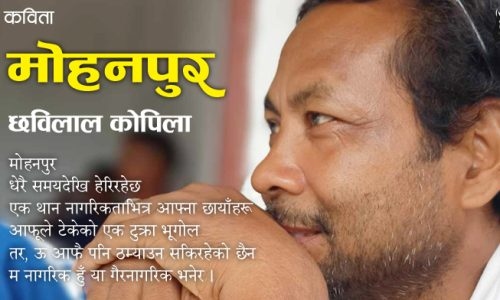 मोहनपुर छविलाल कोपिला २० कार्तिक २०८०, सोमबार मोहनपुर, एक झम्को निद ब्युझिनु अगावै जूनसँगै आँगनमा उभिएर एकजोर आँखाहरू सुन्दर