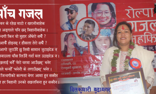 दिलकुमारी बुढामगरका पाँच गजलहरू दिलकुमारी बुढामगर १ बैशाख २०८१, शनिबार गजल–एकजीवन के रहेछ माटो र खरानीबाहेकरात अङ्गाले पनि छन् बिहानीबाहेक । अस्पतालमा